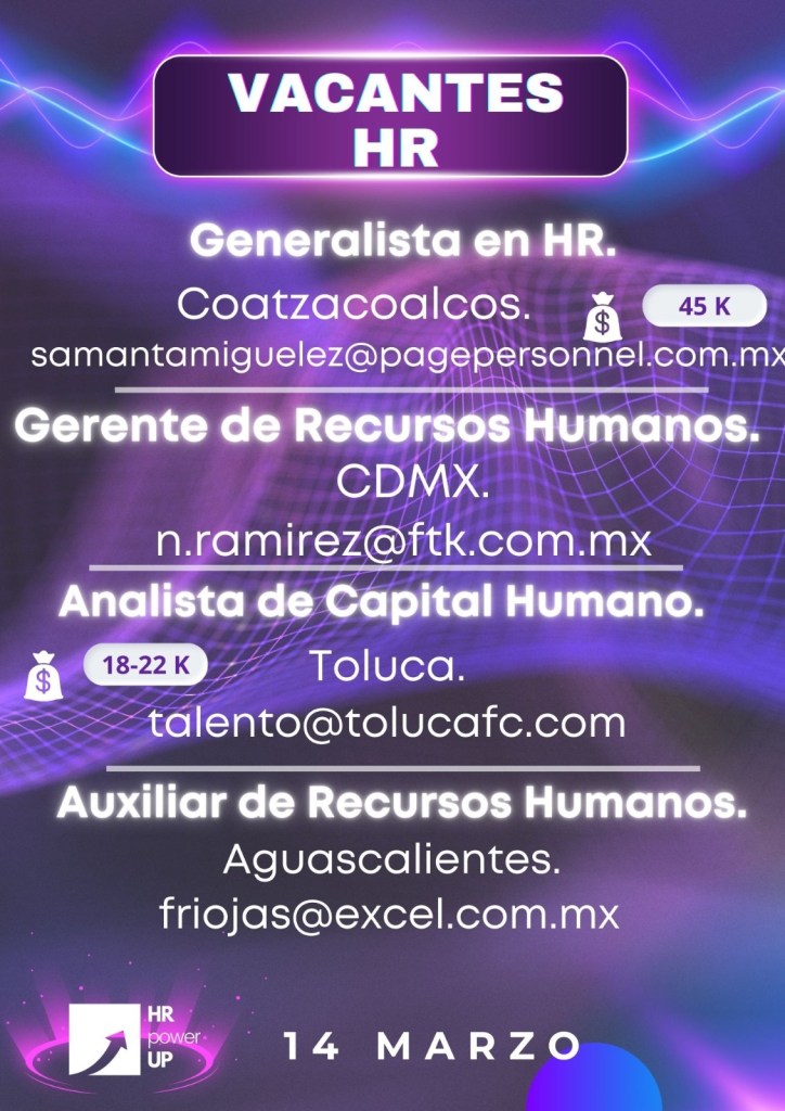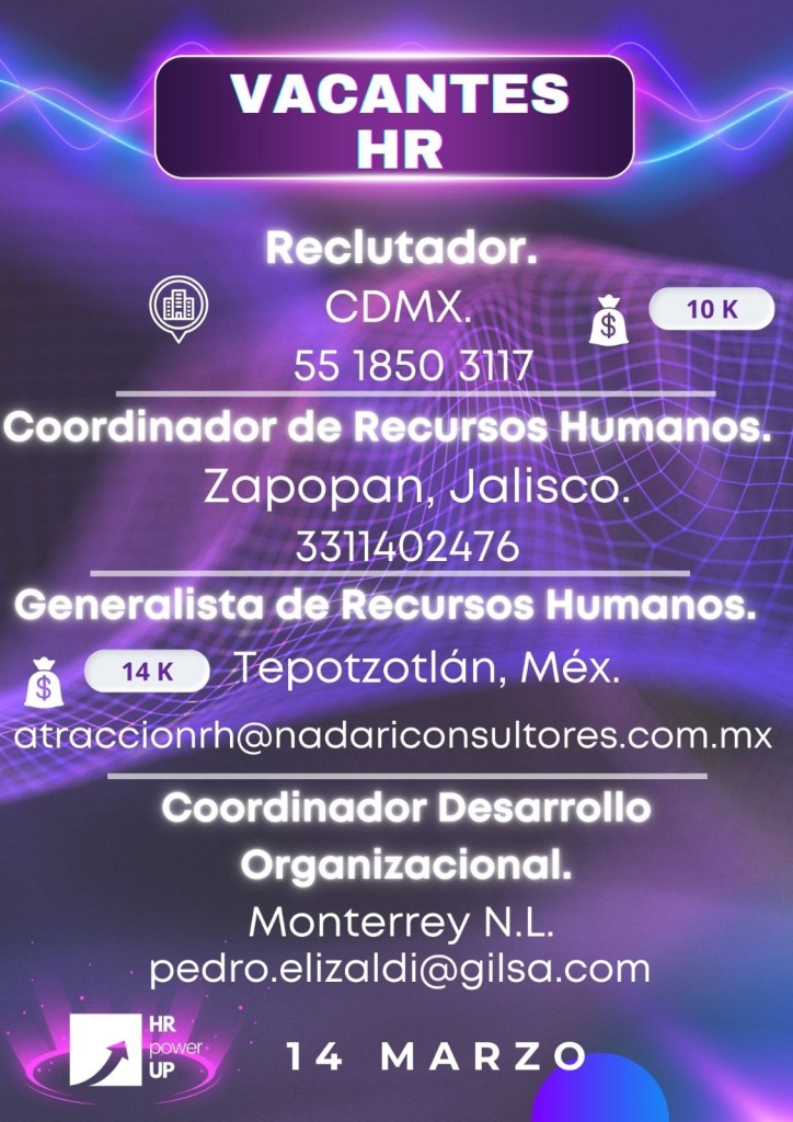 Como apoyo a la comunidad y con el propósito de difundir nuevas oportunidades de empleo, estaremos compartiendo vacantes de HRPowerUp! y más lugares que deseen apoyar. A continuación te compartimos las imágenes que han publicado para que puedas contactarles (toca o da clic en la imagen para hacerla más grande).