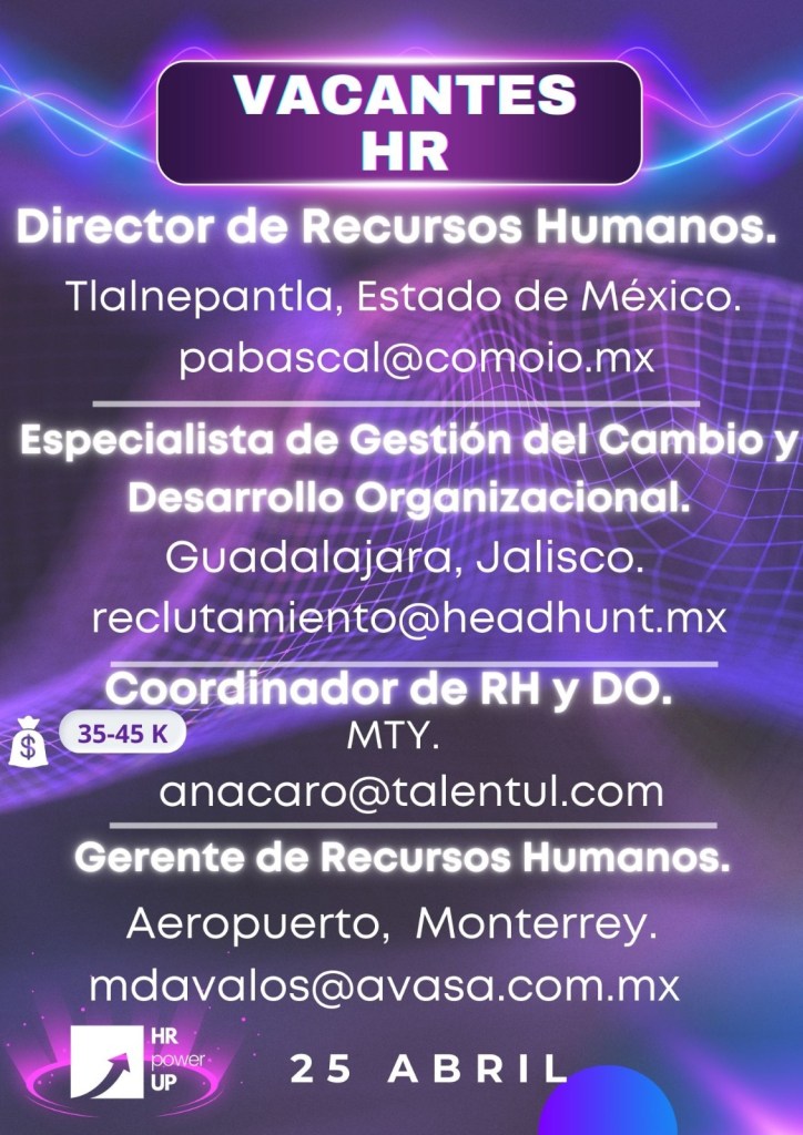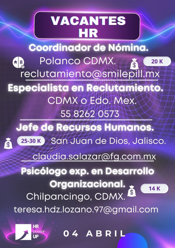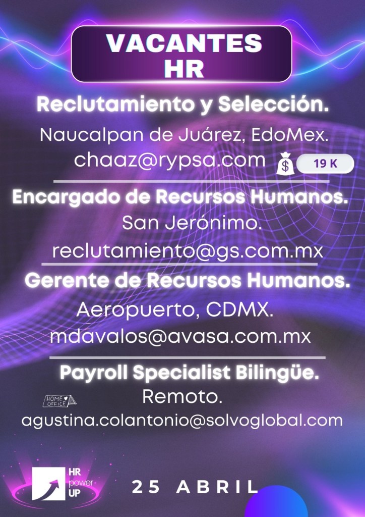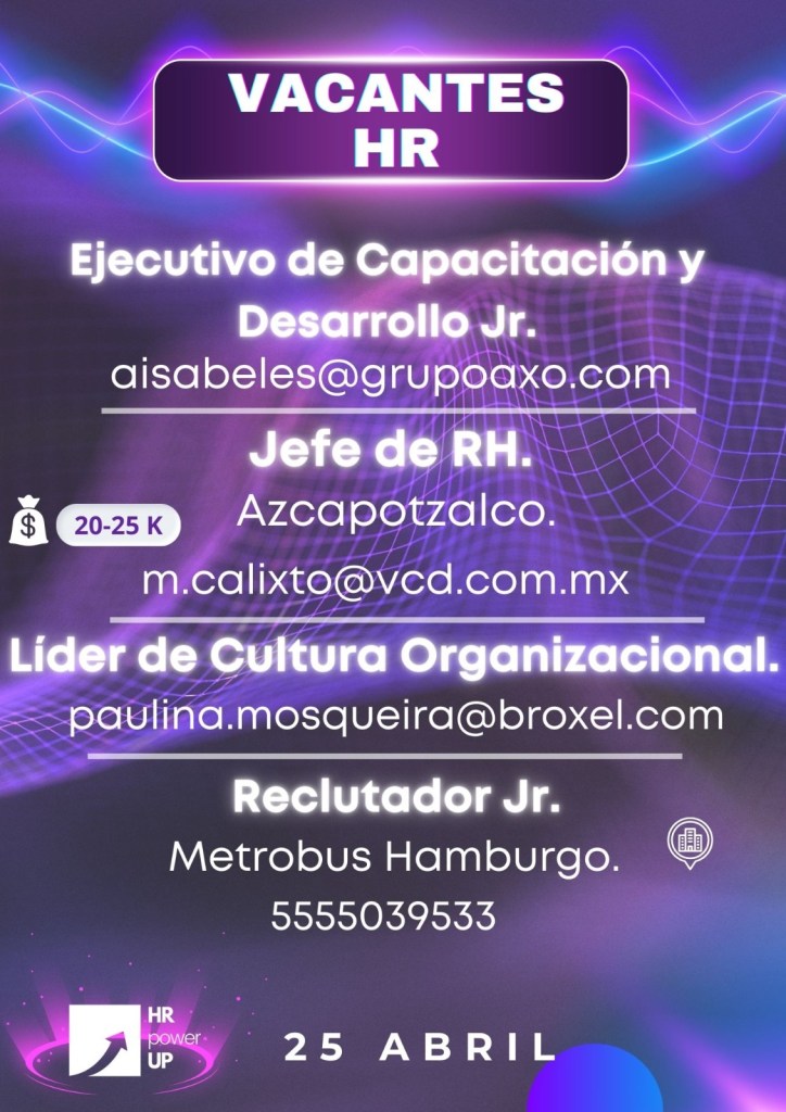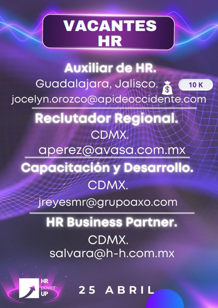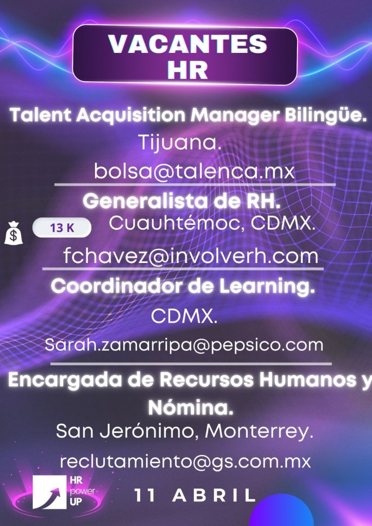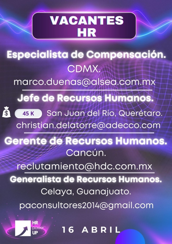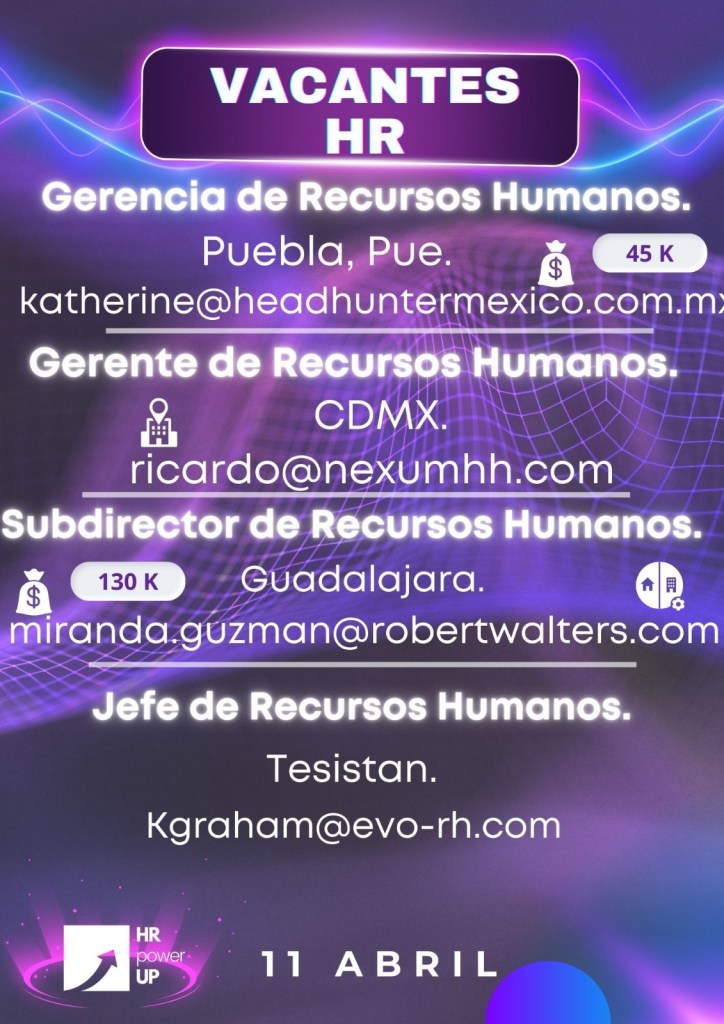 Como apoyo a la comunidad y con el propósito de difundir nuevas oportunidades de empleo, estaremos compartiendo vacantes de HRPowerUp! y más lugares que deseen apoyar. A continuación te compartimos las imágenes que han publicado para que puedas contactarles (toca o da clic en la imagen para hacerla más grande).