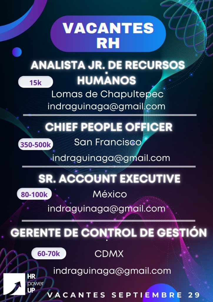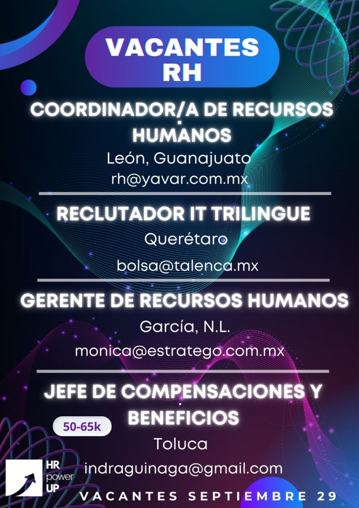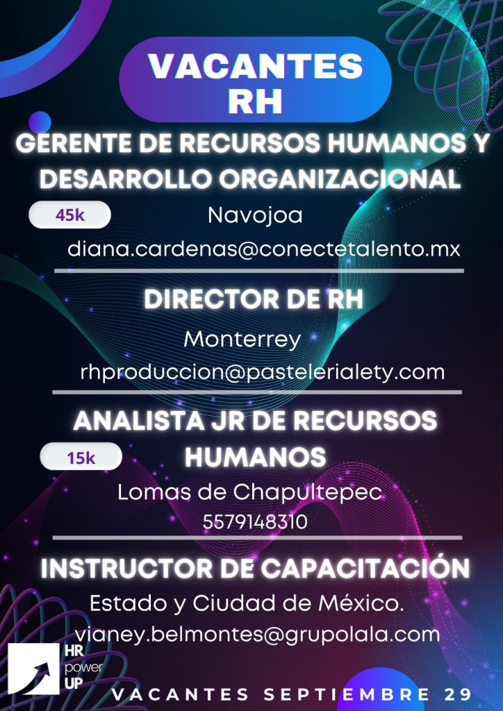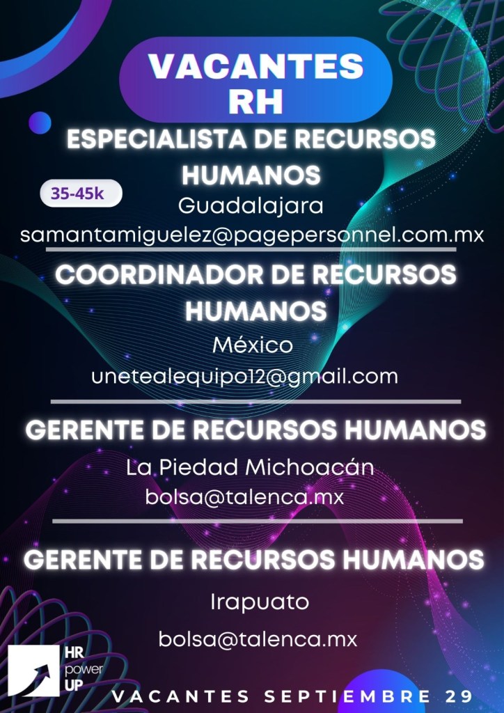 Como apoyo a la comunidad y con el propósito de difundir nuevas oportunidades de empleo, estaremos compartiendo vacantes de HRPowerUp! y más lugares que deseen apoyar. A continuación te compartimos las imágenes que han publicado para que puedas contactarles (toca o da clic en la imagen para hacerla más grande).