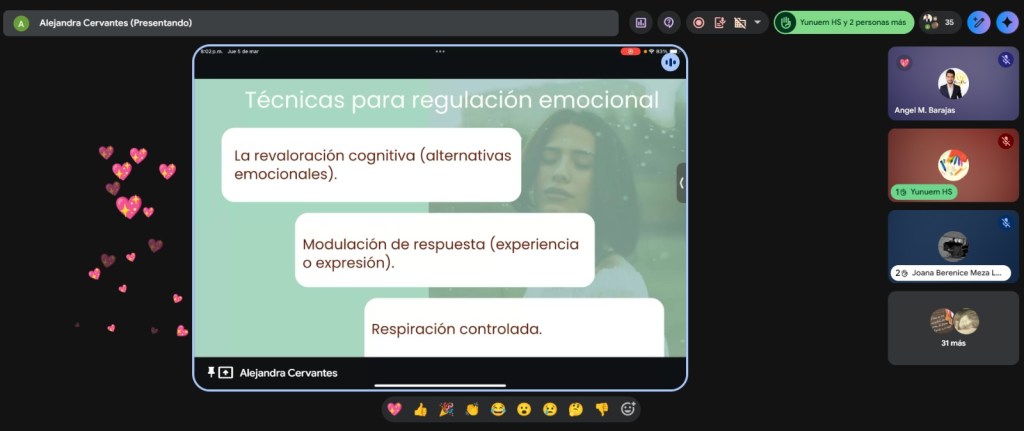 Durante la sesión, la Lic. Cervantes explicó que la inteligencia emocional no se limita a “controlar emociones”, sino a reconocerlas, comprenderlas y regularlas con conciencia.