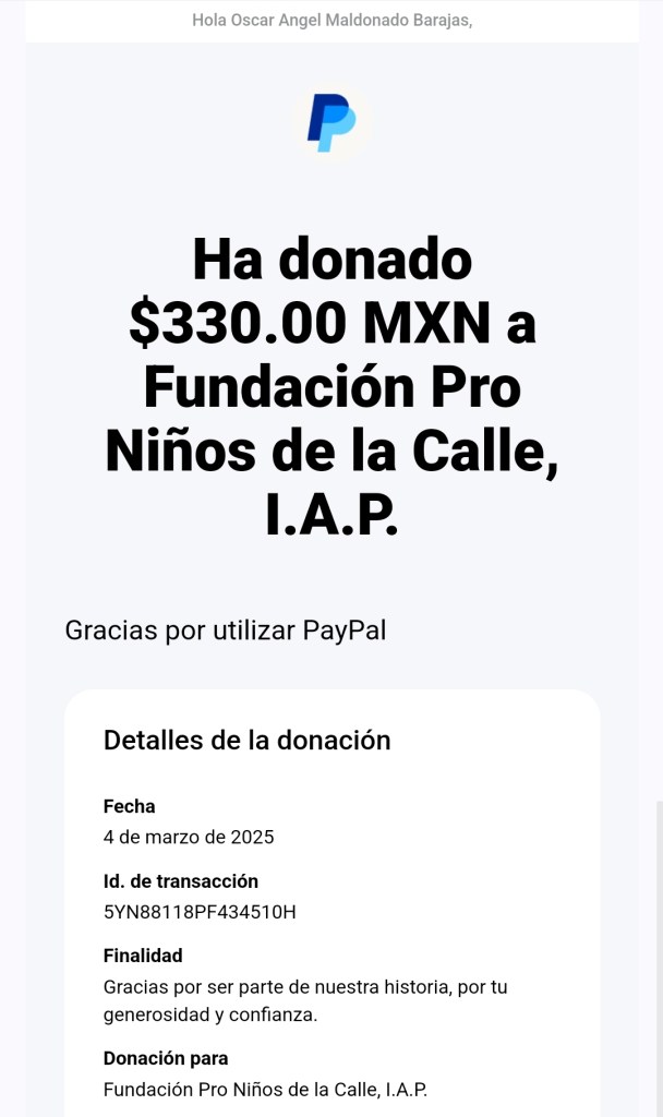 Donación 3 – Fundación PRO Niños de la Calle