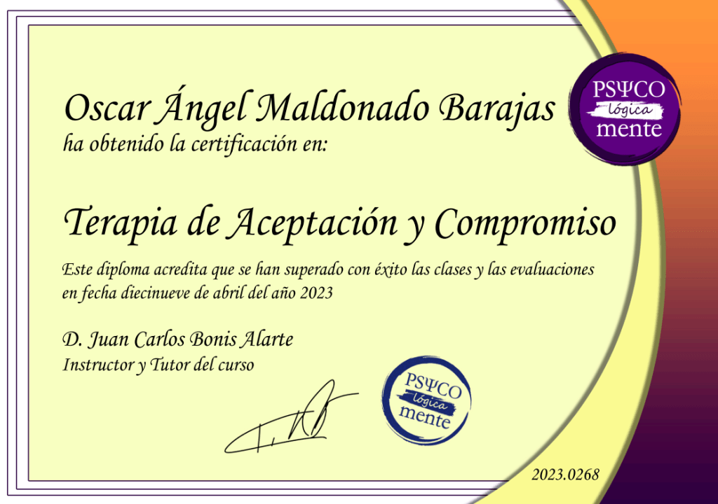 - Certificación en Terapia de Aceptación y Compromiso